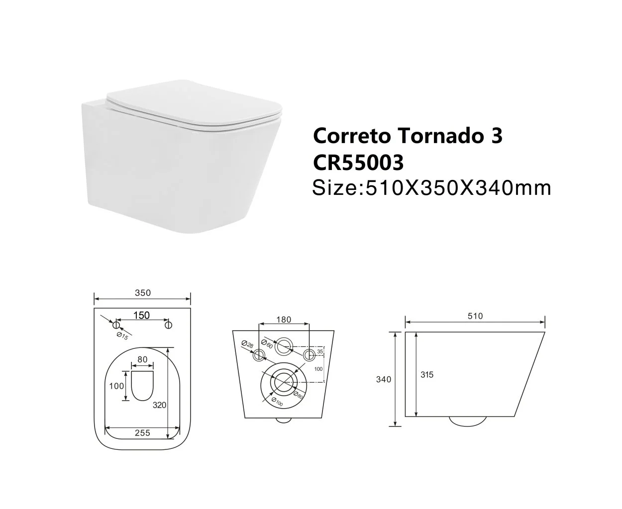 Унитаз подвесной Taliente Correto Tornado 3, белый, с крышкой микролифт CR55003