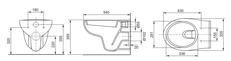 Унитаз TECE TECE V04 тип установки-подвесной ширина мм-355 глубина мм-540 высота мм-355 форма чаши-овальная материал-керамика сиденье-необходимо заказать крепления в наборе цвет-белый