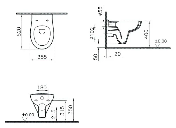 Чаша подвесного унитаза,