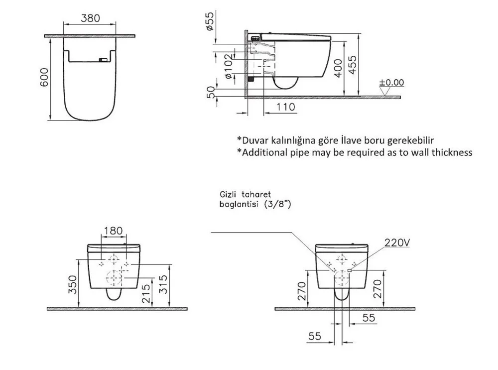 Унитаз подвесной VitrA V-Care Basic 5674B003-6193 с системой дозирования моющих и дезодорирующих сре
