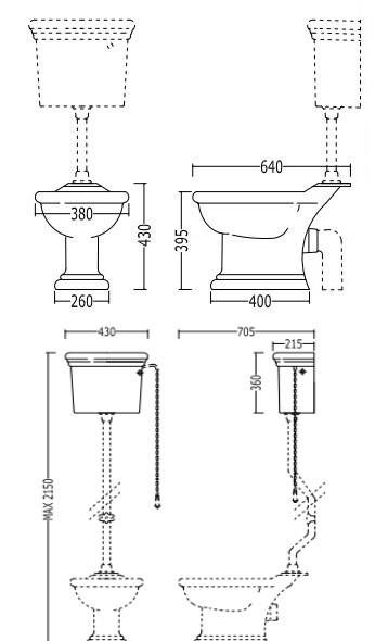 - Ручка, цепочка и рычаг для высокого бачка арт. 2IBPCLWESCR (хром/черный) или арт. 2IBPCLWESOT (латунь/черный) - возможные варианты