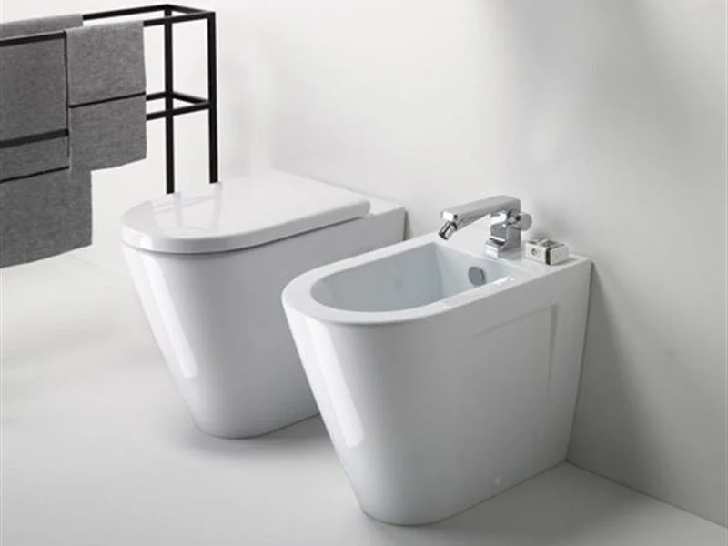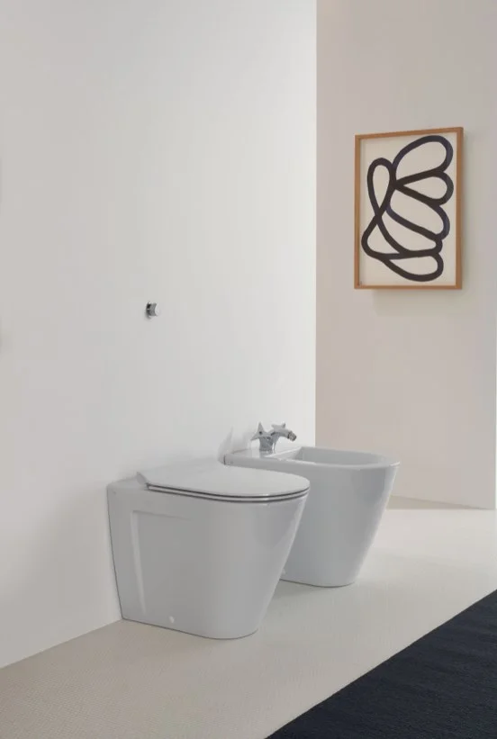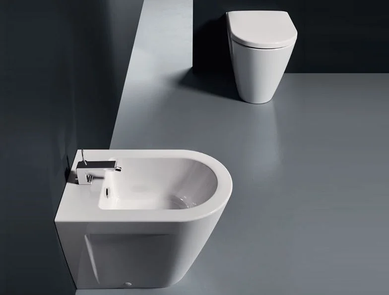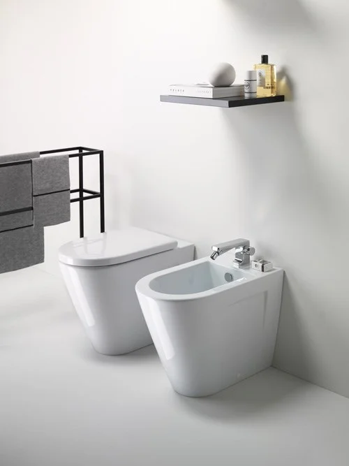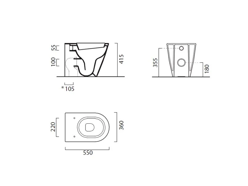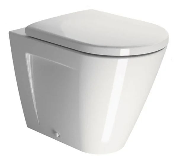 Унитаз приставной со сливом в стену (P) трансформируемым в пол (S) через отводящую трубу. Размер - 55х36х42 см. Цвет - белый глянцевый.