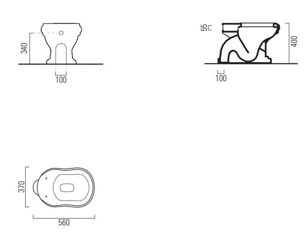 Унитаз приставной, может комплектоваться высоким бачком, слив в пол (S). Размер - 56х37х40 см. Цвет - белый.