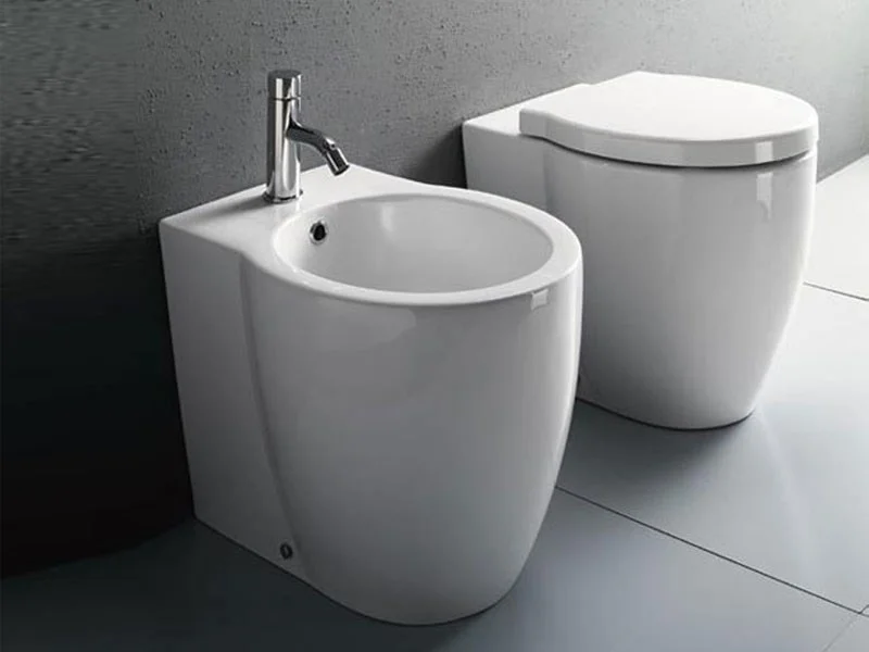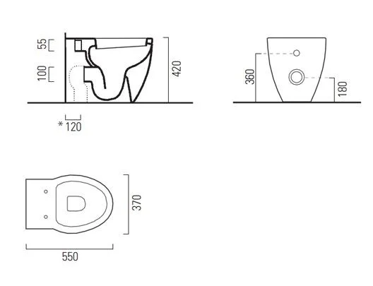 Унитаз приставной со сливом в стену (P), трансформируемым в пол (S) через отводящую трубу. Размер - 55х37.5х41 см. Цвет - белый.