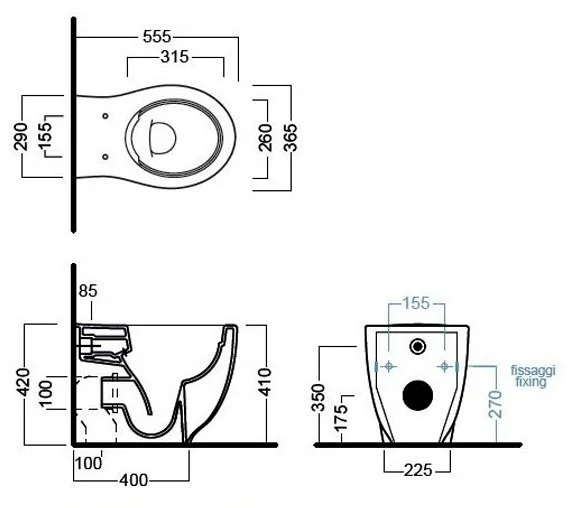 Унитаз приставной Y1E701 HATRIA LE FIABE безободковый с универсальным сливом, в комплекте с сливным коленом и крепежом. Может быть укомплектована сиденьем с системой плавного закрывания крышки YXWW или с обычной крышкой YXWX.