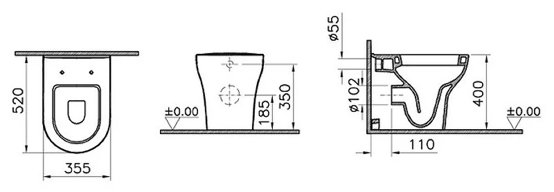 Унитаз приставной Vitra Zentrum 5788B003-0075 белый