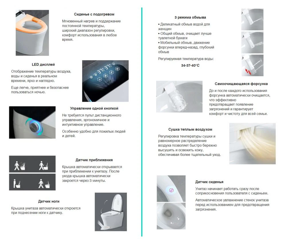 Унитаз SMART ABBER Bequem AC1119S с функией биде белый с крышкой микролифт