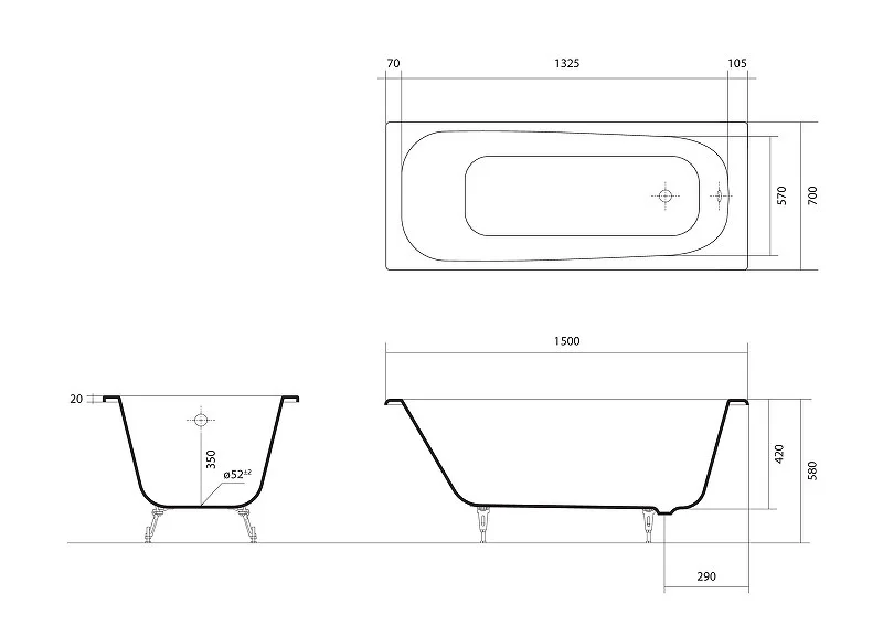 Ванна чугунная Aquatek СИГМА AQ8850F-00 1500x700 в комплекте с 4-мя ножками