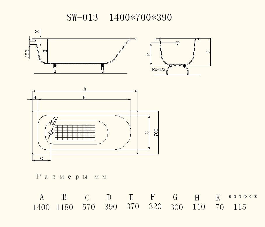 Ванна чугунная BYON 13 - 140*70*39. Классическая ванна 140х70 см .Белая Ванна чугунная с идеально ровным покрытием высокопрочной эмали.