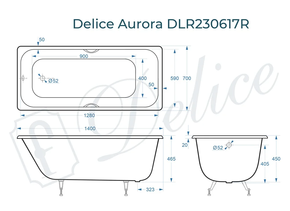 Ванна чугунная Delice France Aurora 1400х700 с отверстиями под ручки DLR230617R