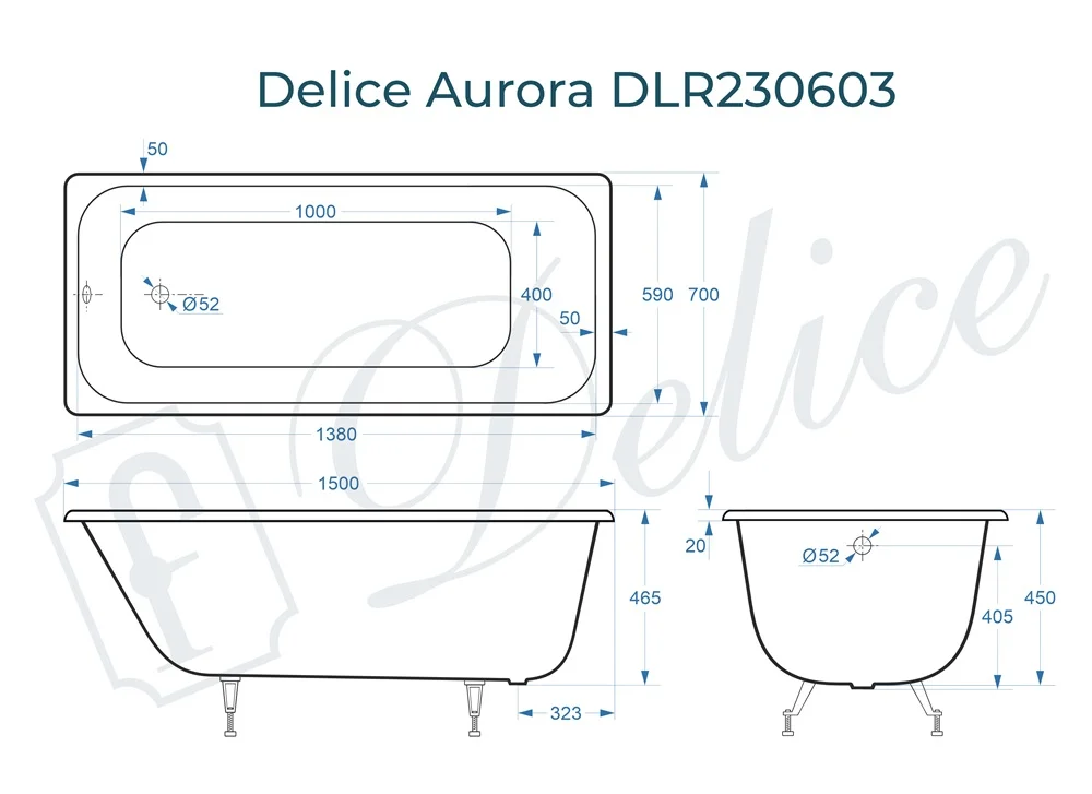 Ванна чугунная Delice Aurora 1500х700 DLR230603
