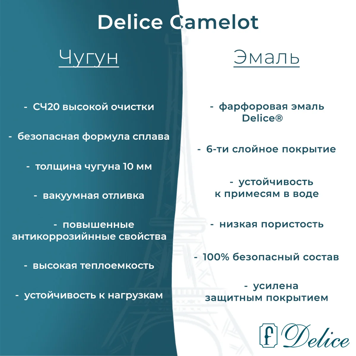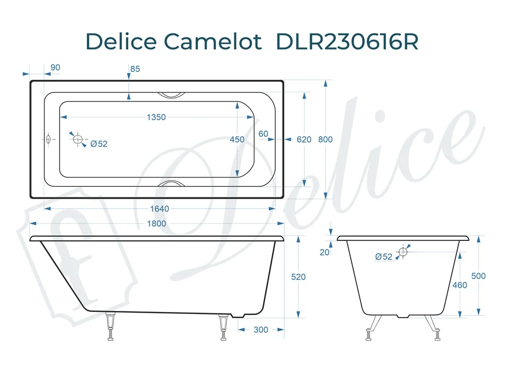 Ванна чугунная Delice Camelot 1800х800 с отверстиями под ручки DLR230616R