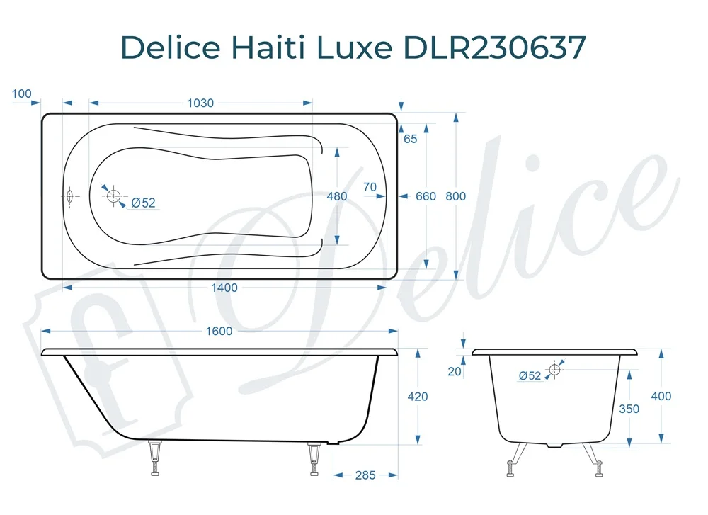 Ванна чугунная Delice Haiti Luxe 160х80 DLR230637