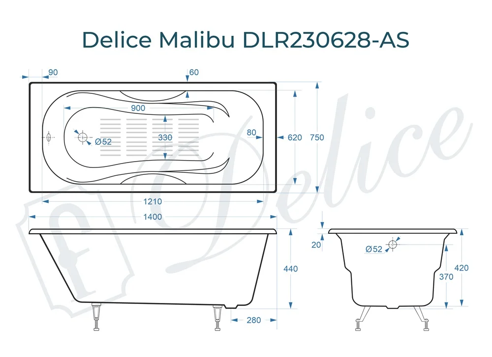 Ванна чугунная Delice Malibu 140х75 с антискользящим покрытием DLR230628-AS