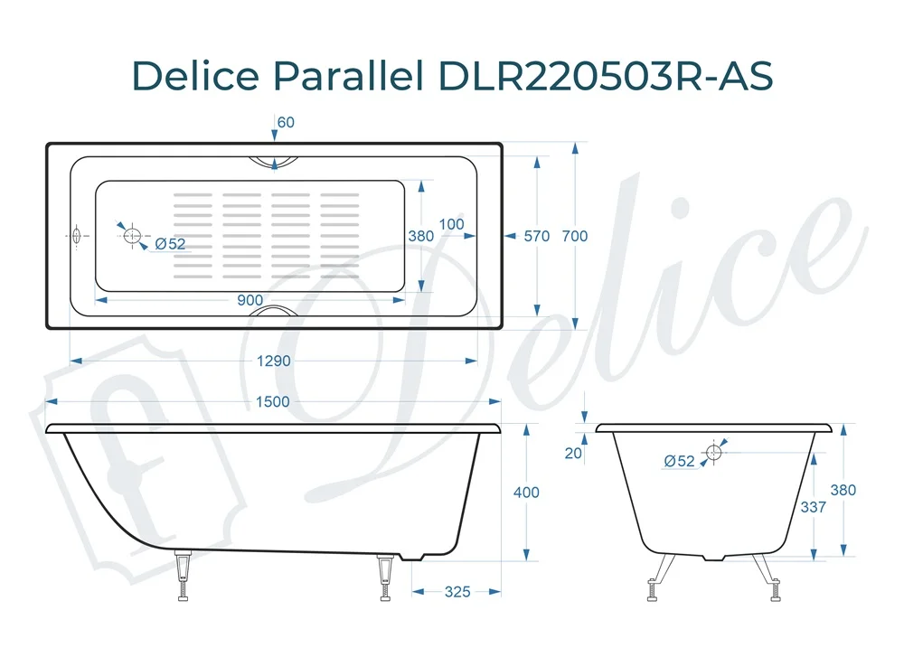 Ванна чугунная Delice Parallel 1500х700 с ручками и антискользящим покрытием DLR220503R-AS