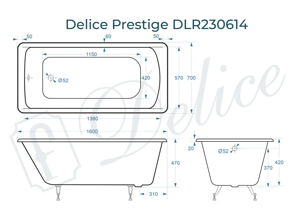 Ванна чугунная Delice Prestige 160х70 DLR230614