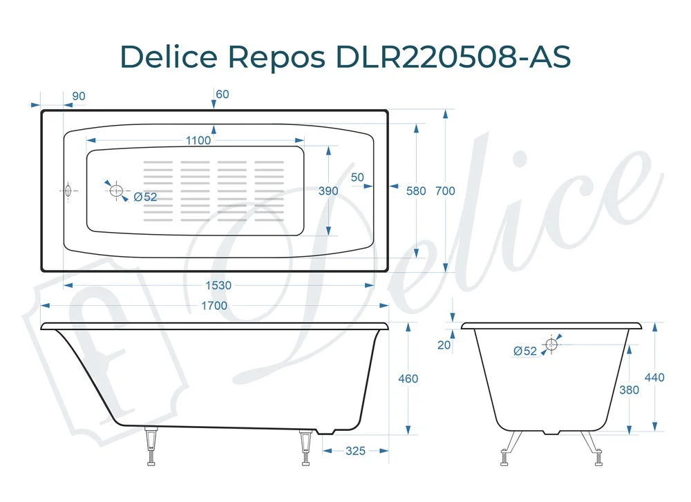 Ванна чугунная Delice Repos 1700х700 без ручек с антискользящим покрытием DLR220508-AS
