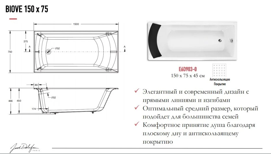 Ванна чугунная Jacob Delafon Biove 150x70 E6D903-0