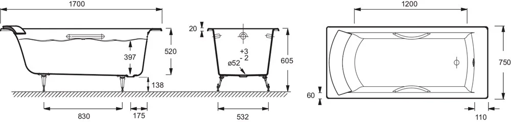 Ванна чугунная Jacob Delafon Biove 170x75 E2938-00