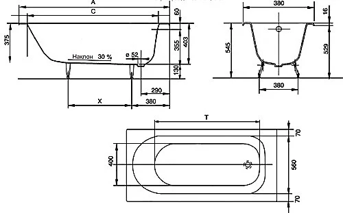 Soissons 150х70см, ванна, чугунная, прямоугольная, без антискользящего покрытия, арт. E2941-00, Jacob Delafon
