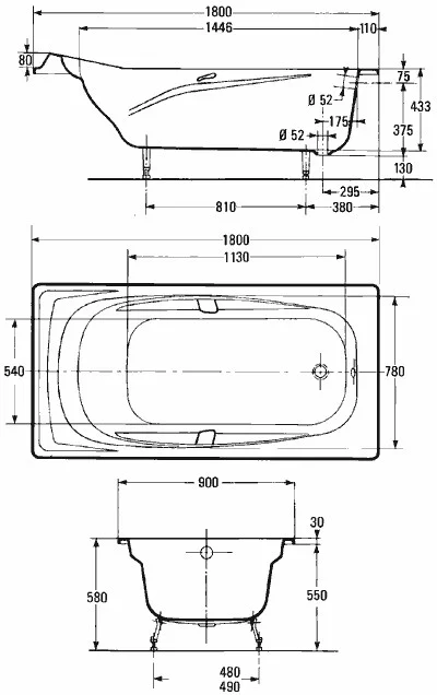 Super repos 180х90см, ванна, чугунная, прямоугольная, с антискользящим покрытием, без г/м, арт. E2902-00, Jacob Delafon