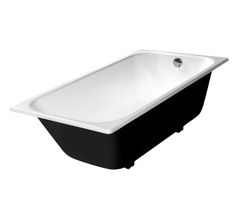• Прямоугольная чугунная ванна имеет глубокую чашу, увеличенную ширину и зауженный борт