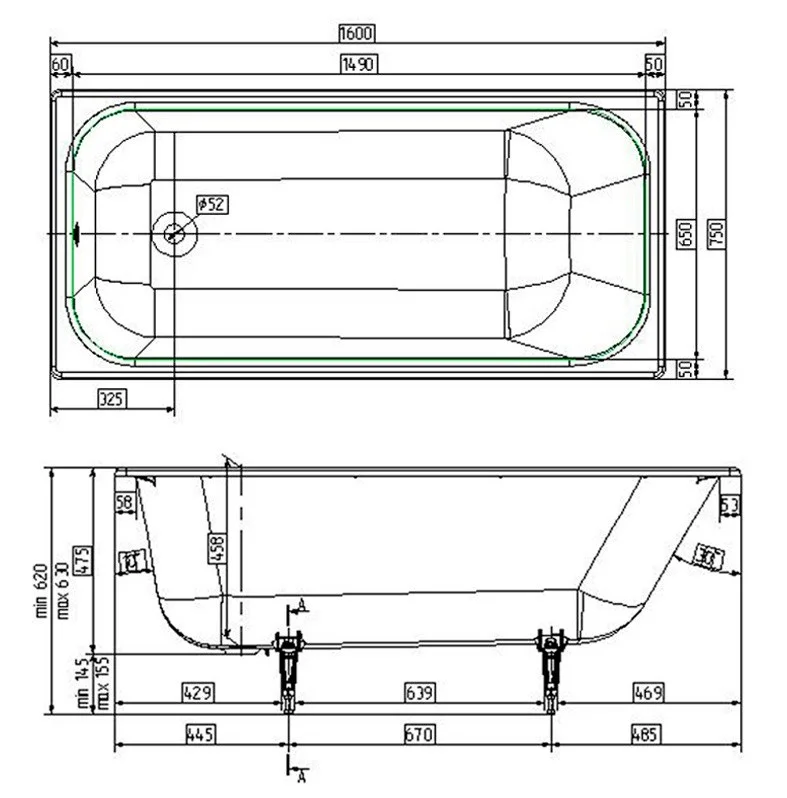 Ванна чугунная Wotte Start 160х75, с ручками Start 1600x750UR