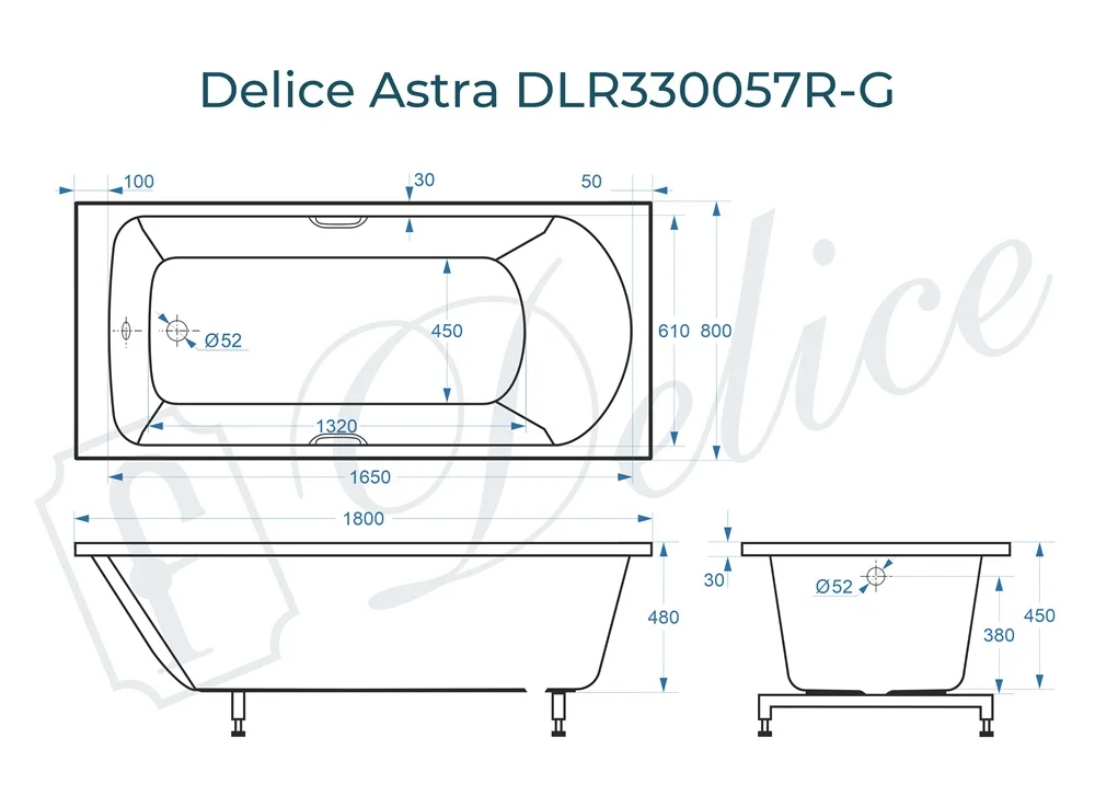 Описание ванны из литьевого мрамора Delice Astra 180х80 глянцевая с ручками хром