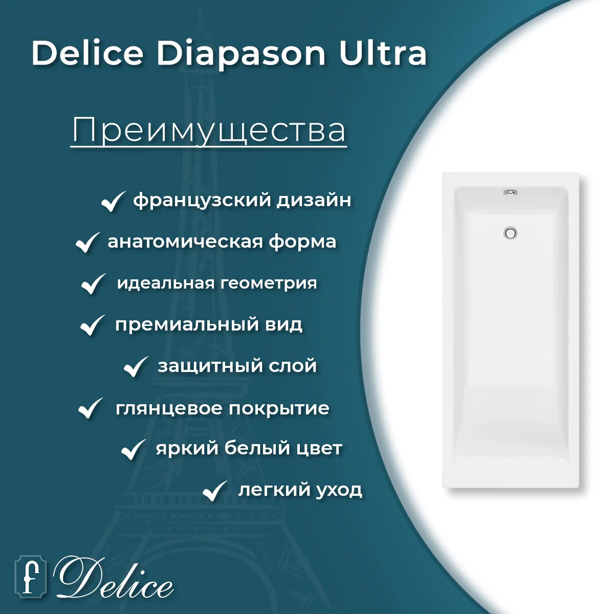 Delice Diapason Ultra 150х70 с глянцевым покрытием выпускается в 2-х модификациях: