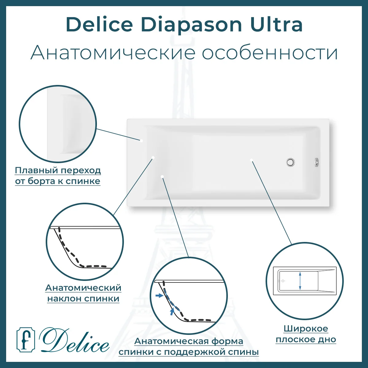 Описание ванны из литьевого мрамора Delice Diapason Ultra с узким бортом 150х70 глянцевая