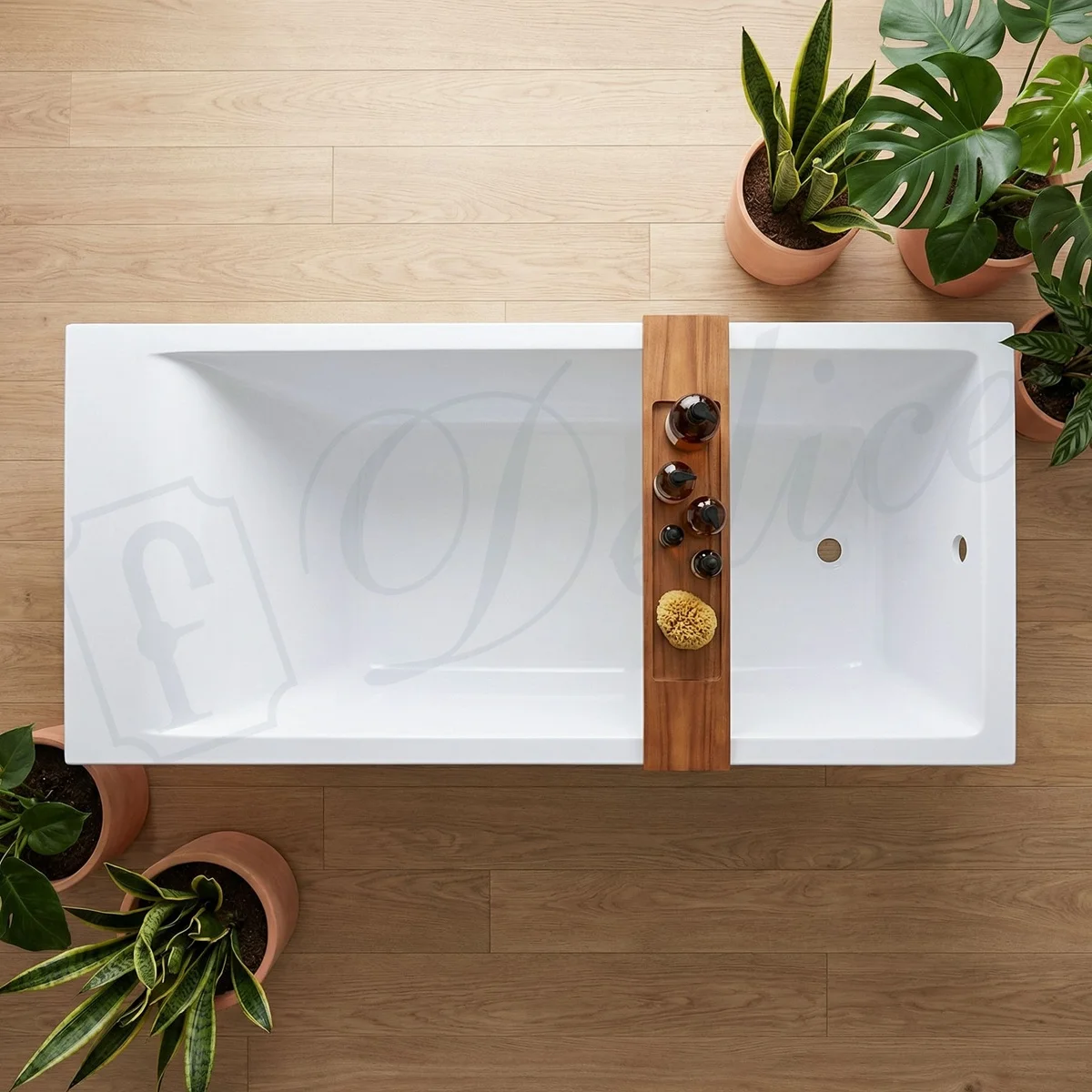 Для установки используются фирменные ножки Delice, которые имеют надежное и прочное крепление, обеспечивают высокую устойчивость ванны и регулируются по высоте. Высота на ножках варьируется от 57 до 62 см. С помощью регулировки можно нивелировать геометрические отклонения пола, стен и углов в ванной комнате. За счет высокой плотности материала, при установке не требуется шумоизоляция, а также заземление, так как литьевой мрамор не проводит электрический ток. При необходимости изменения габаритов под ванную комнату, борты ванны можно уменьшить механической обработкой.