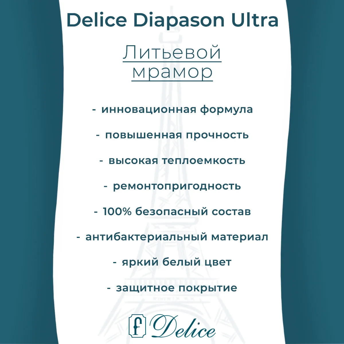 Литьевой мрамор Delice создан по инновационной передовой технологии. Для улучшения характеристик в состав добавляют модифицирующие компоненты, которые придают материалу уникальные свойства: