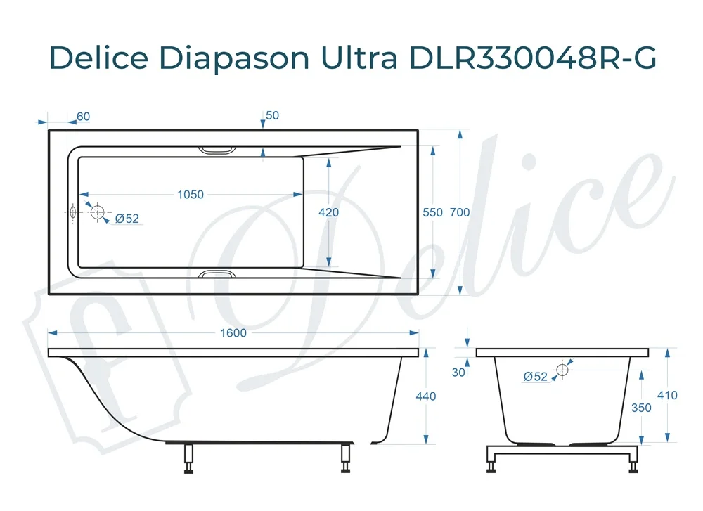 Delice Diapason Ultra 160х70 с глянцевым покрытием выпускается в 2-х модификациях: