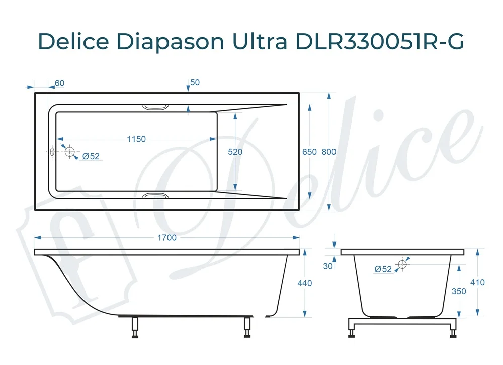 Delice Diapason Ultra 170х80 с глянцевым покрытием выпускается в 2-х модификациях:
