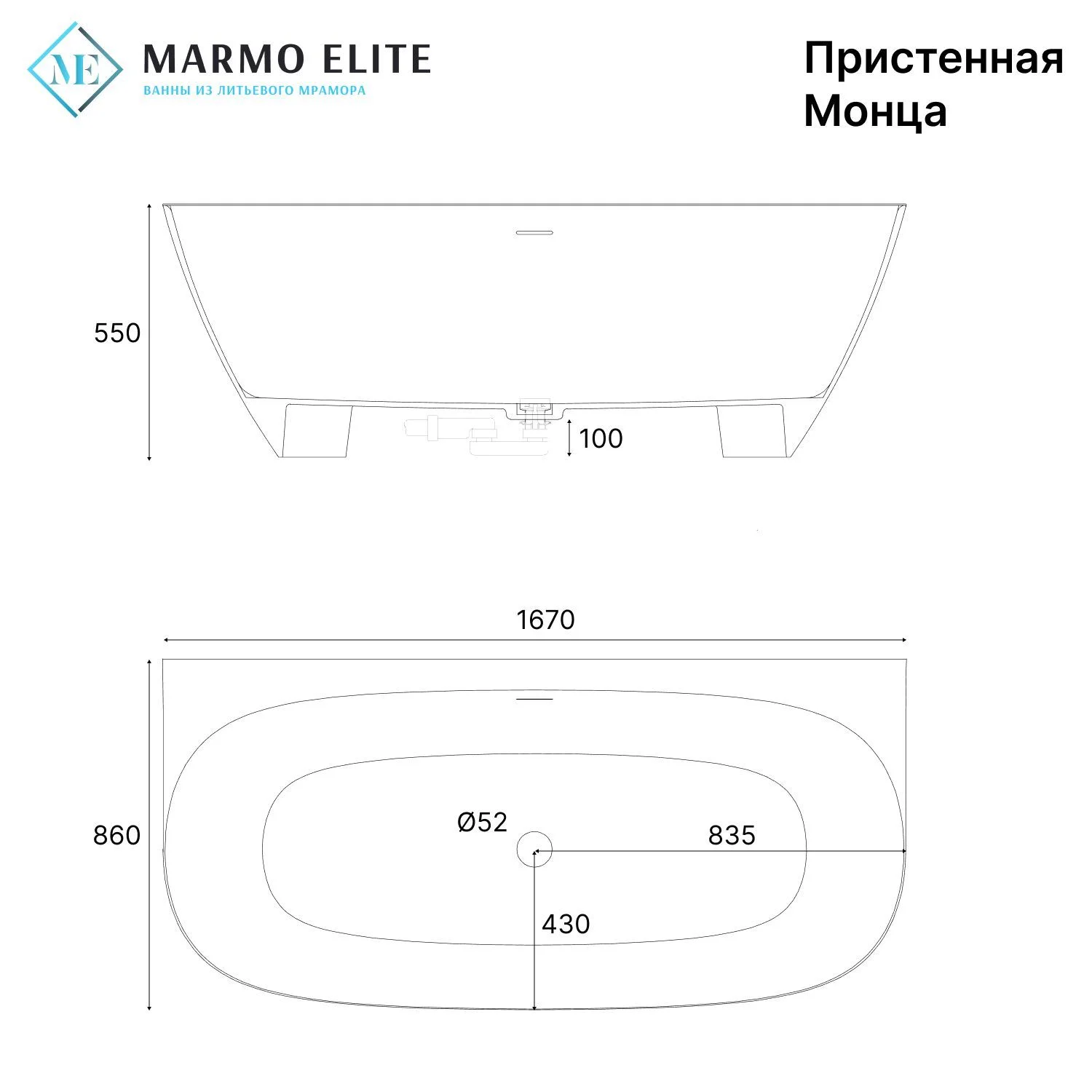 Ванна из искусственного камня Marmo-Elite Монца PBA-167-86-2 1670x860 без перелива, матовая