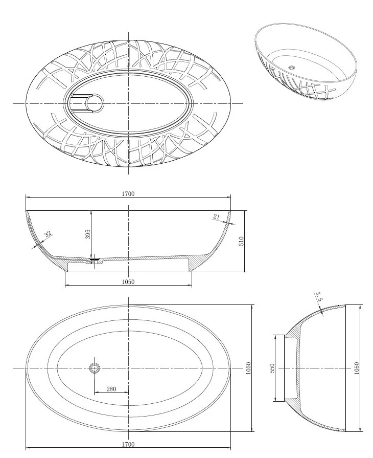 У модели NT 307 нет ножек в привычном смысле – она стоит на невысоком цоколе, который отлично подчеркивает ее авангардные формы и расцветку. Пикантной изюминкой в оформлении изделия является небольшая выемка – ступенька на передней части ванны. Она открывает вид на белоснежную внутреннюю часть, делая сугубо практический предмет сантехники настоящим произведением искусства.