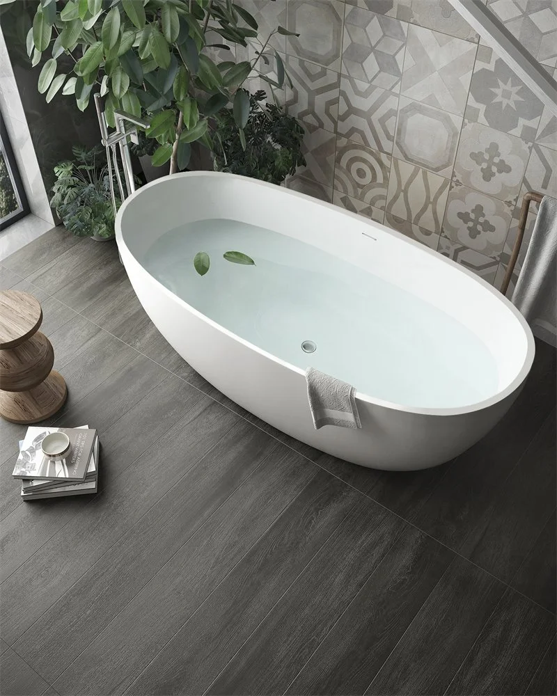 Ванна выглядит солидно, но за счет строгости форм не кажется массивной. Она станет настоящим украшением любой ванной комнаты – отдельной или совмещенной с санузлом.
