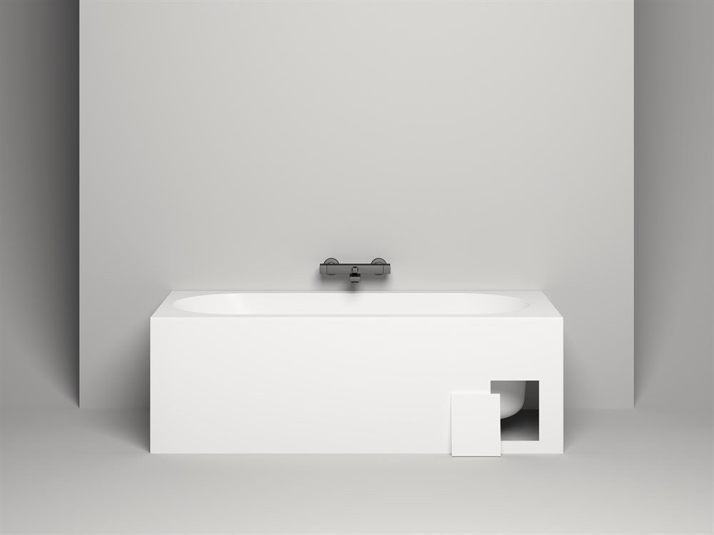 ORNELLA КIТ - это встраиваемая ванна с овальной округлой чашей, которая идеально вписывается в пространство от стены до стены в ванных комнатах небольших размеров.