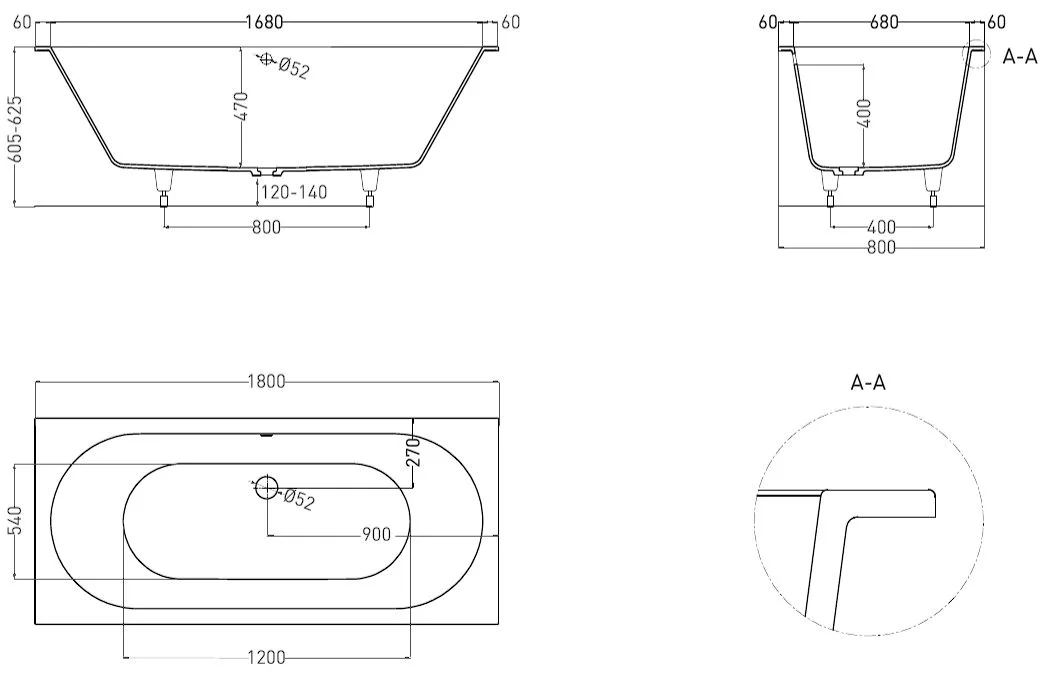 Вневременная эстетика и чистые линии корпуса ванны делают её уместной и желанной как в классическом, так и в современном интерьере. Ванна предназначена для полного или частичного встраивания, а также для любой установки — пристенной, угловой или отдельно стоящей. Модель отличают донный клапан и слив-перелив с центральным расположением.