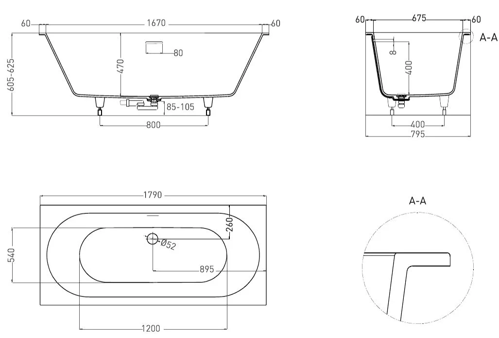 Красавица Ornella характеризуется одинаковым пологим уклоном бортов и расположенными посередине сливом-переливом и донным клапаном. Название модели Axis («Ось) отражает характерную симметрию ванны во фронтальной проекции.