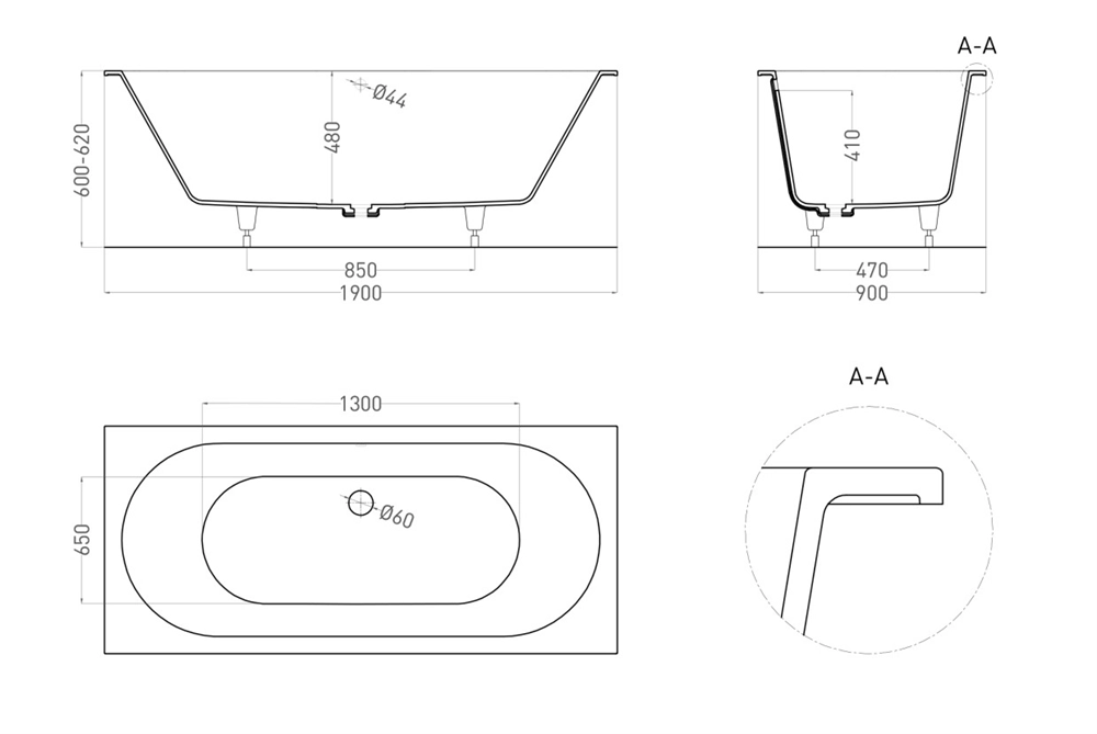 Красавица Ornella характеризуется одинаковым пологим уклоном бортов и расположенными посередине сливом-переливом и донным клапаном. Название модели Axis («Ось) отражает характерную симметрию ванны во фронтальной проекции.
