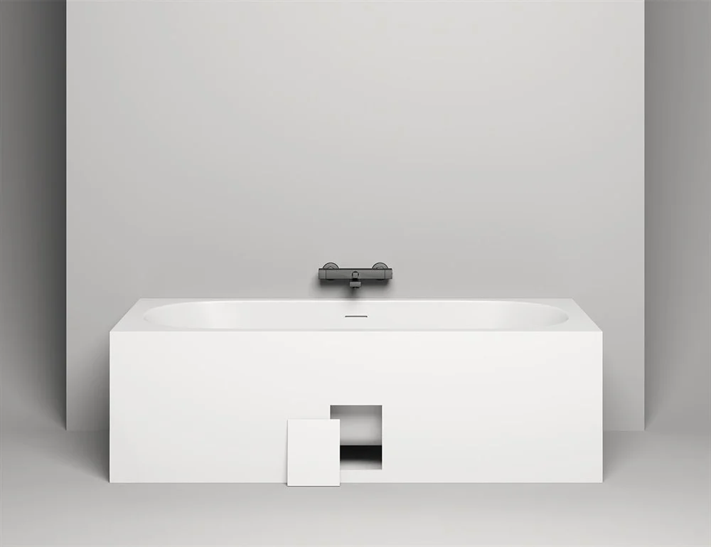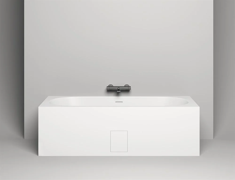 Помимо установки на пол, ванна может быть полностью или частично встроена в пол или подиум. В последнем случае, ванна также оснащается декоративными экранами, высота которых адаптируется по запросу. Ванна может быть дополнена ревизионным люком, вырезанным во фронтальном экране для доступа к сифону. Люк с тонким контуром, находящийся в одной плоскости с экраном, гарантирует безупречную эстетику этой лаконичной модели. Таким образом, одна и та же универсальная модель от Salini способна обладать параметрами, соответствующими персональному запросу, встраивается в любое предназначенное для нее пространство и удовлетворяет всем критериям современного качества жизни.