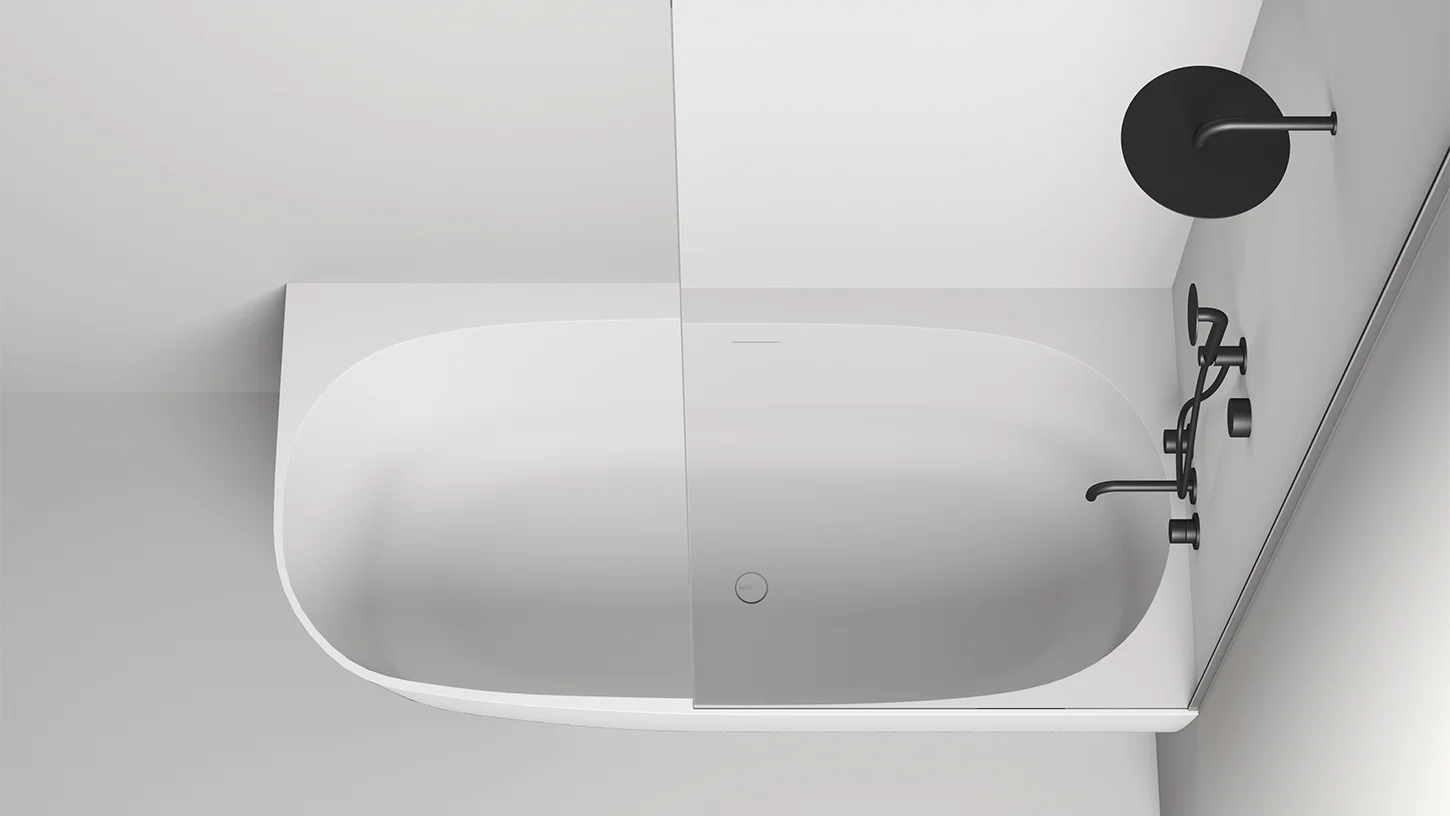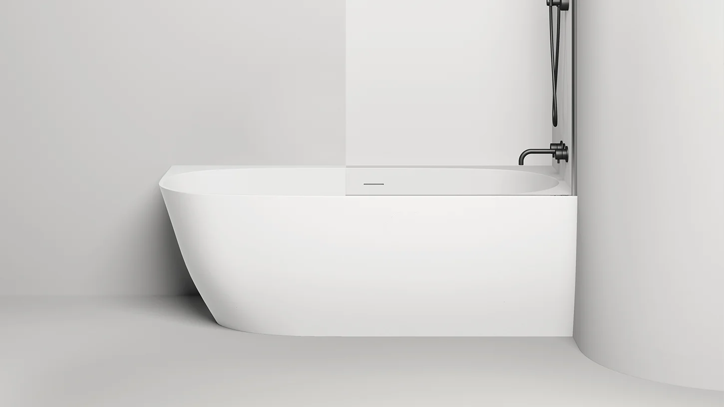 Ванна SOFIA CORNER R в материале S-Stone доступна к заказу только в светлых оттенках по палитре RAL Classic (возможно исполнение в графитовом чёрном цвете RAL 9011).