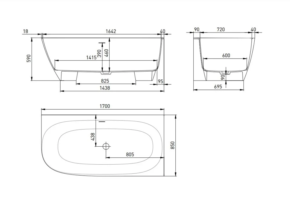Ванна SOFIA CORNER R в материале S-Stone доступна к заказу только в светлых оттенках по палитре RAL Classic (возможно исполнение в графитовом чёрном цвете RAL 9011).
