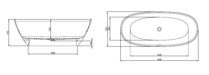 Ванна из искусственного камня Stonex® Roca Ariana 165х75 см, 248470000 белая