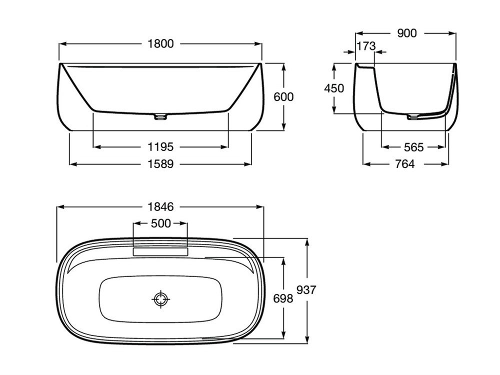 Свободностоящая ванна Surfex®, без отверстий для смесителя.
