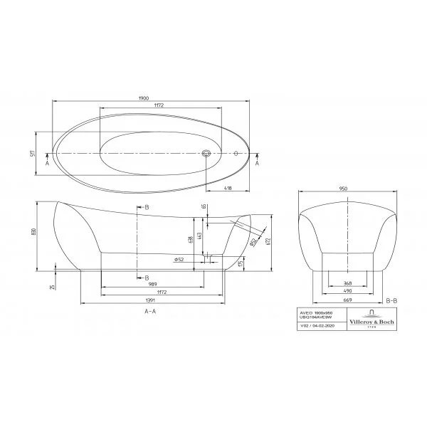 1 отдельностоящая ванна, 1 удлиненный слив и перелив (хромированный)