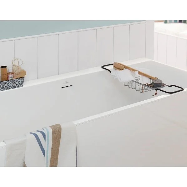 1 прямоугольная ванна, 2 подставки для ванны (самоклеящияся), регулируемые от 130 до 180 мм, 1 подходящий слив и перелив. Крышка слива подходит к