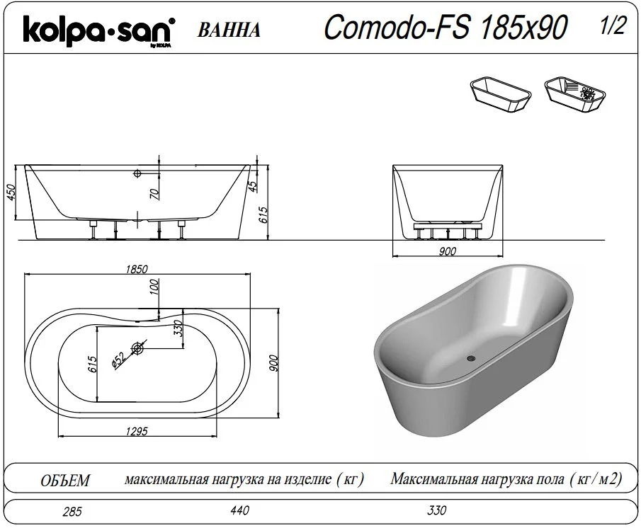 Ванна отдельностоящая Kolpa-San COMODO FS 185x90 черный 593790 акриловая