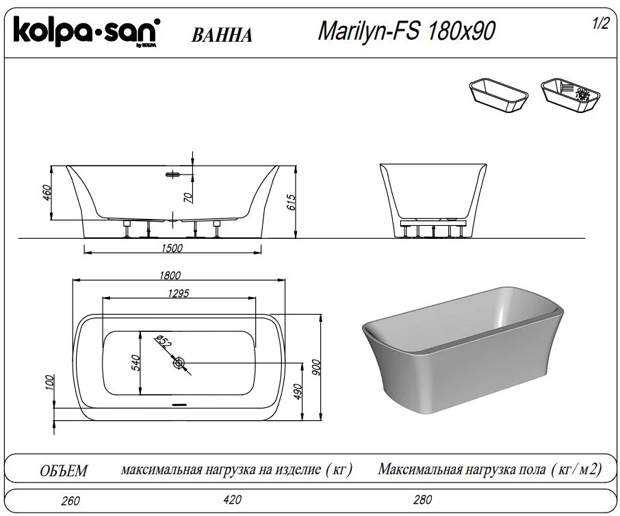 Ванна отдельностоящая Kolpa-San MARILYN FS 180x90 593970 акриловая